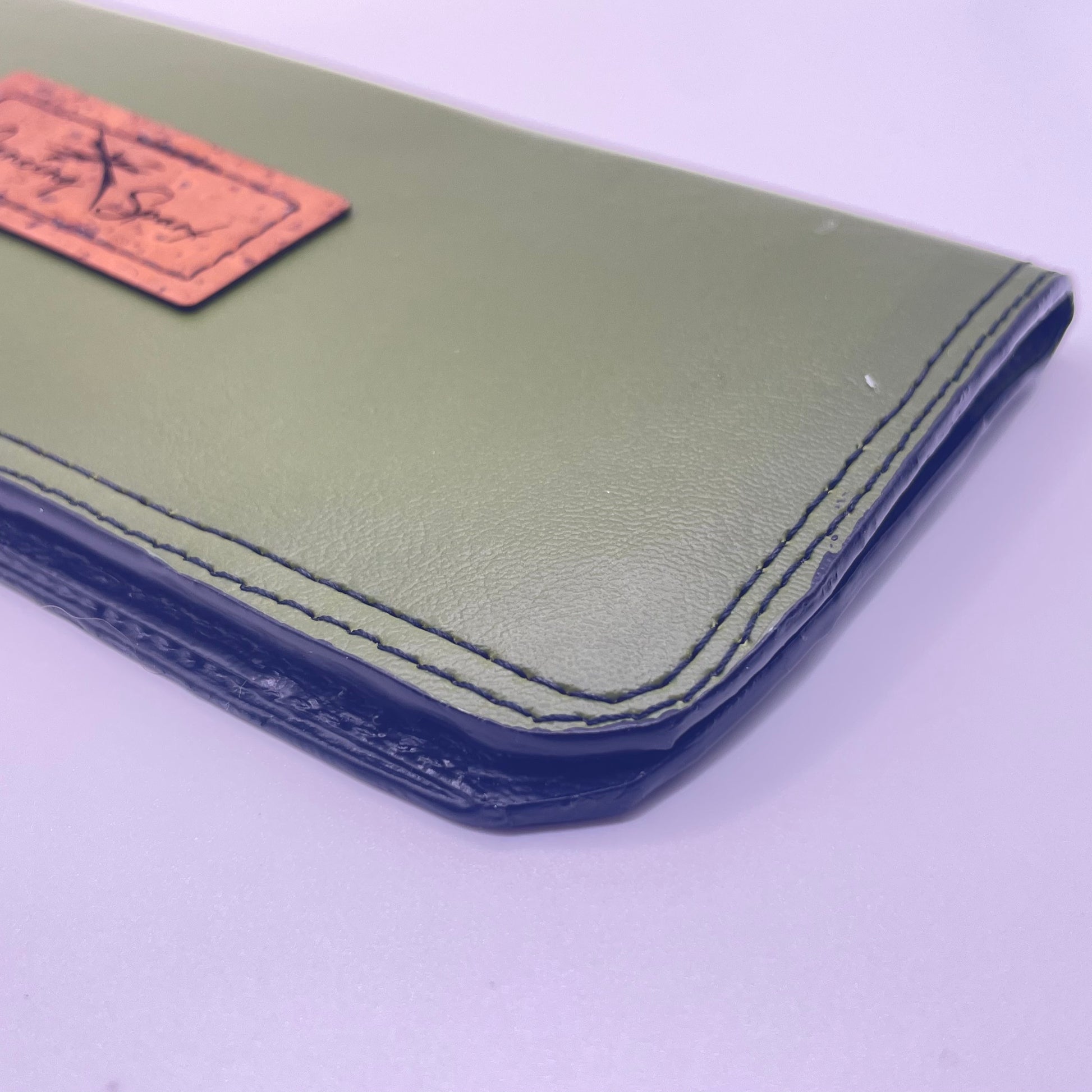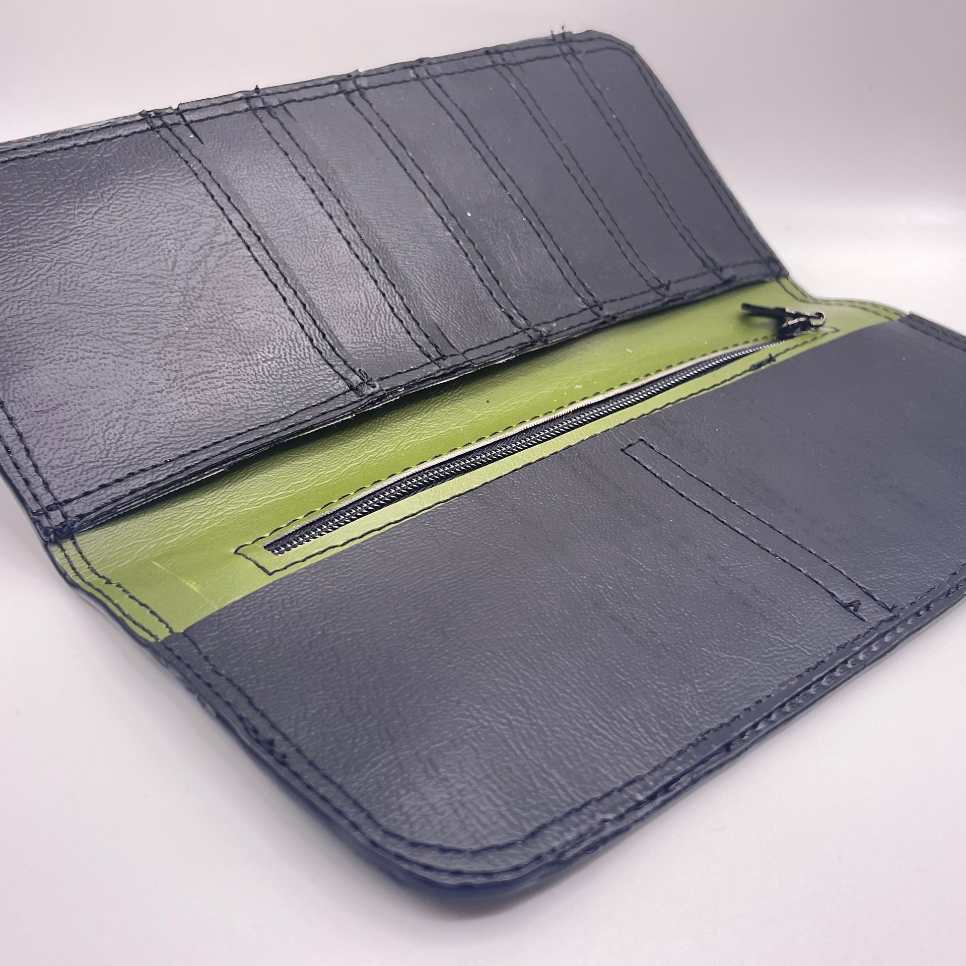 This is the full size Sigma Wallet. Simple folded construction with plenty of space for cards and an interior zipper pocket. No snap closure on this one, so it's easy to pack full and stash quickly.