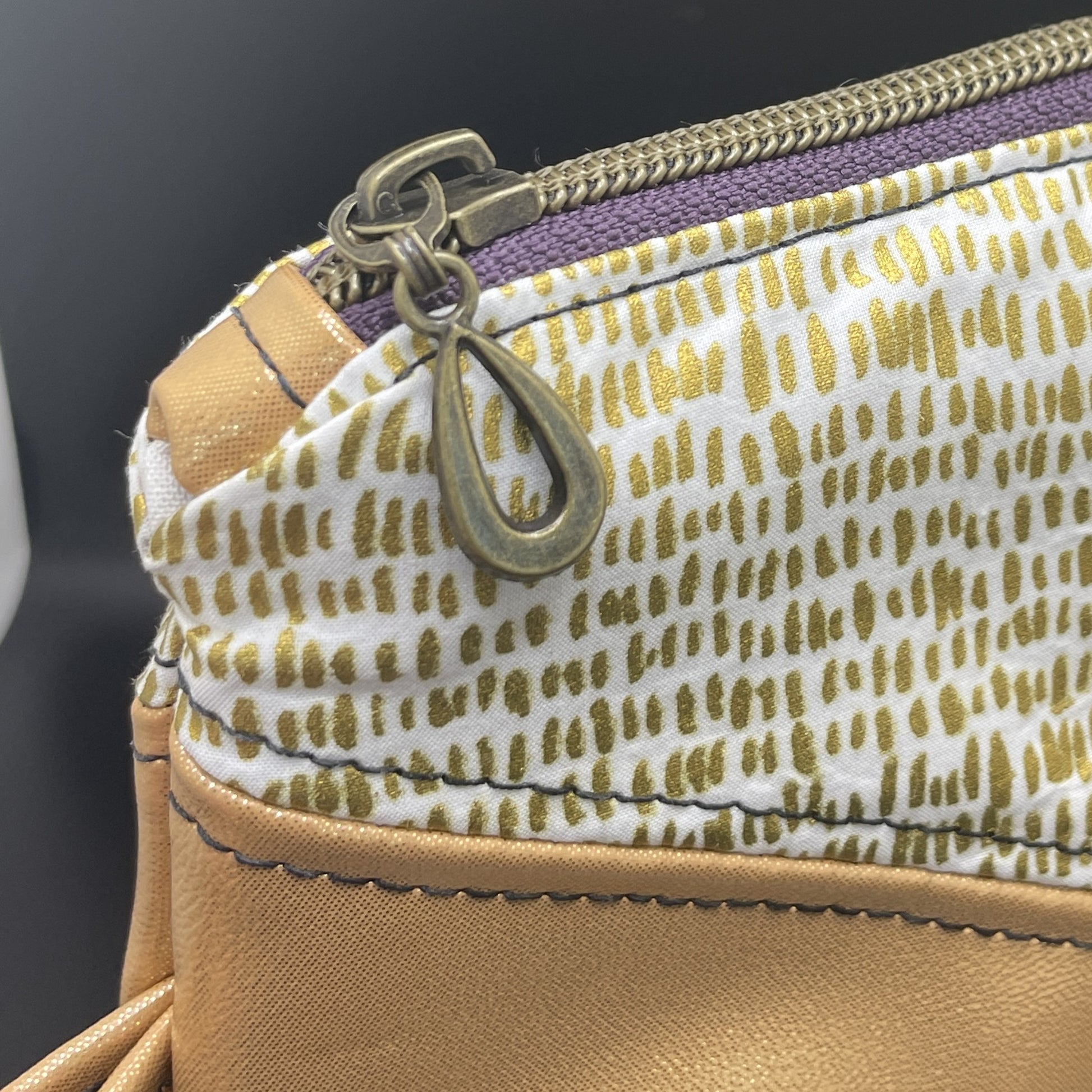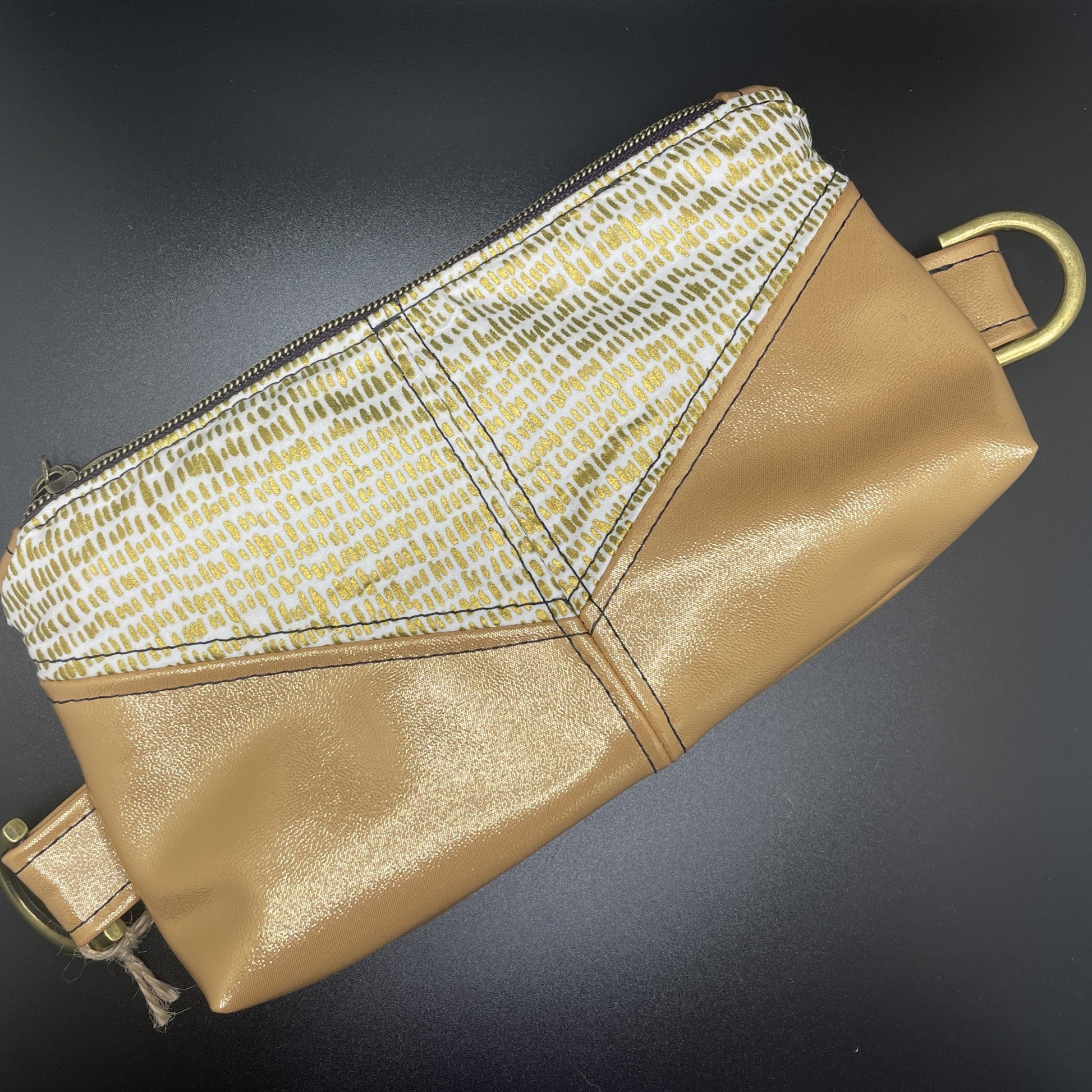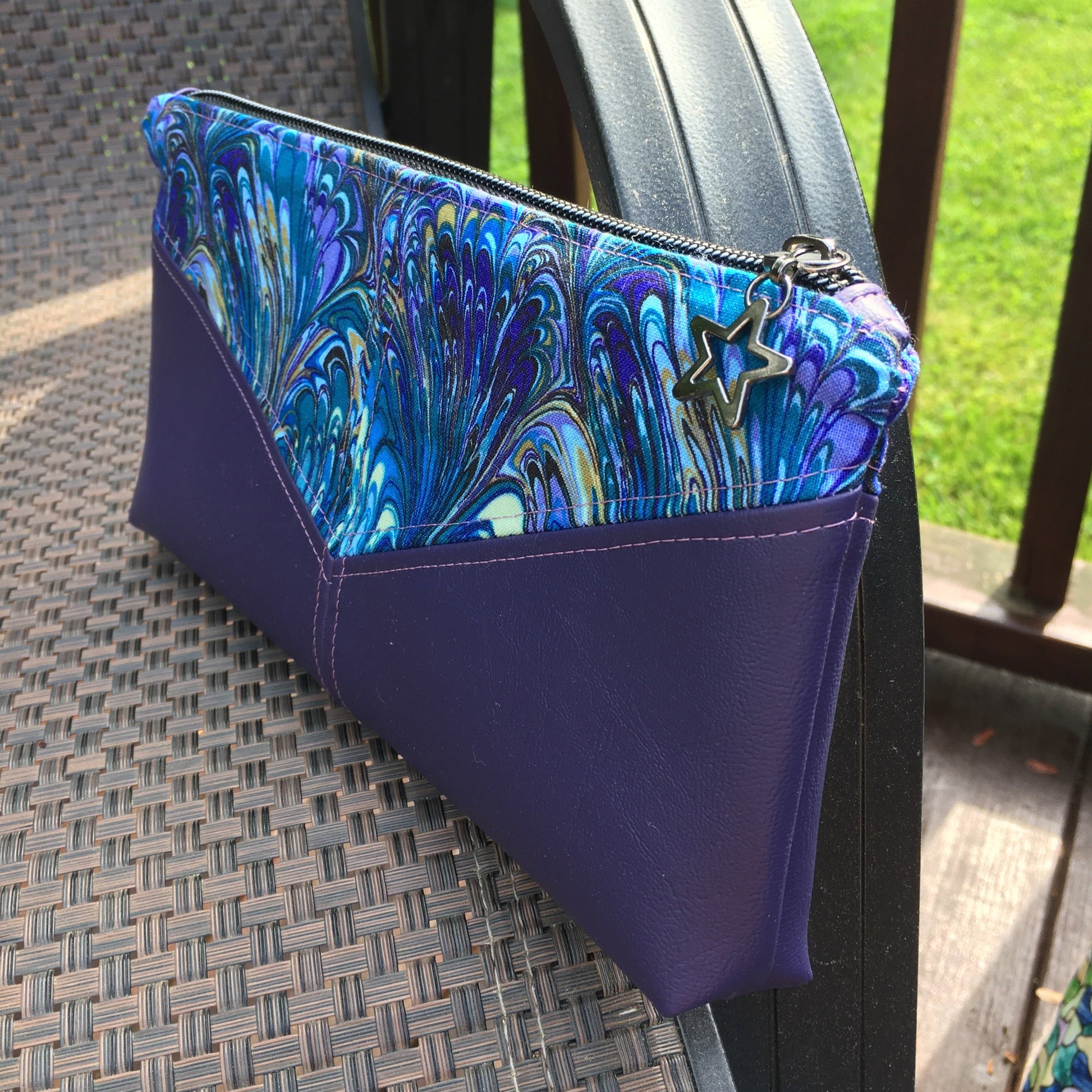 This is the Harlequin Pouch Designed by Crafted by Leanne. This version is great to use as a small clutch for a night on the town. Some variations have D-rings so you can add a shoulder strap or a wrist-let strap for easier carrying. Measuring about 5" tall and 10" wide, it is perfect to hold a small wallet and keys or any other potentially loose items you would like to have on hand. Chap-stick anyone?